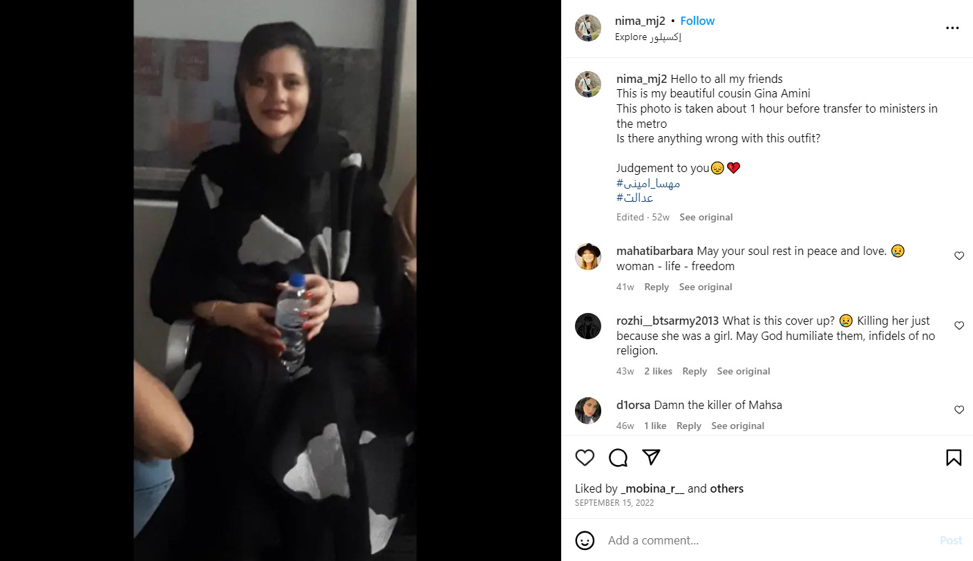 “Protests Continue in Tehran and Kurdistan Amid Fury Over Death of Mahsa Amini,” IranWire, September 18, 2022, downloaded September 26, 2023, https://iranwire.com/en/provinces/107630-protests-continue-in-tehran-and-kurdistan-amid-anger-over-death-of-mahsa-amini/.